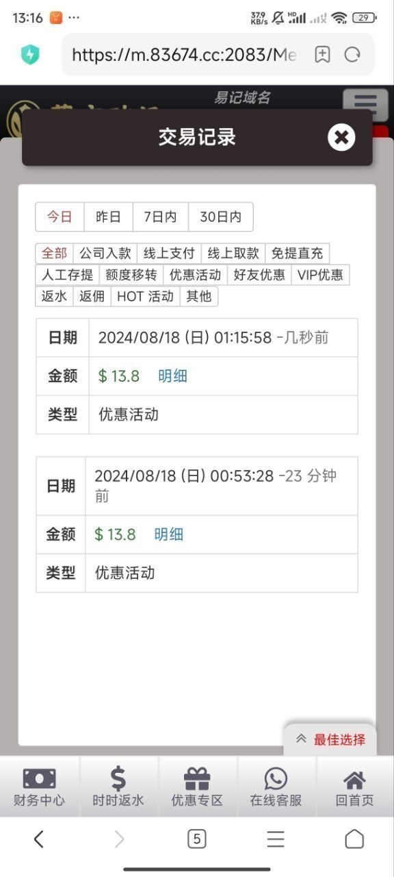 新用户手机号注册特邀秒38/老用户登录账号有13.8回馈彩金,出款自测!