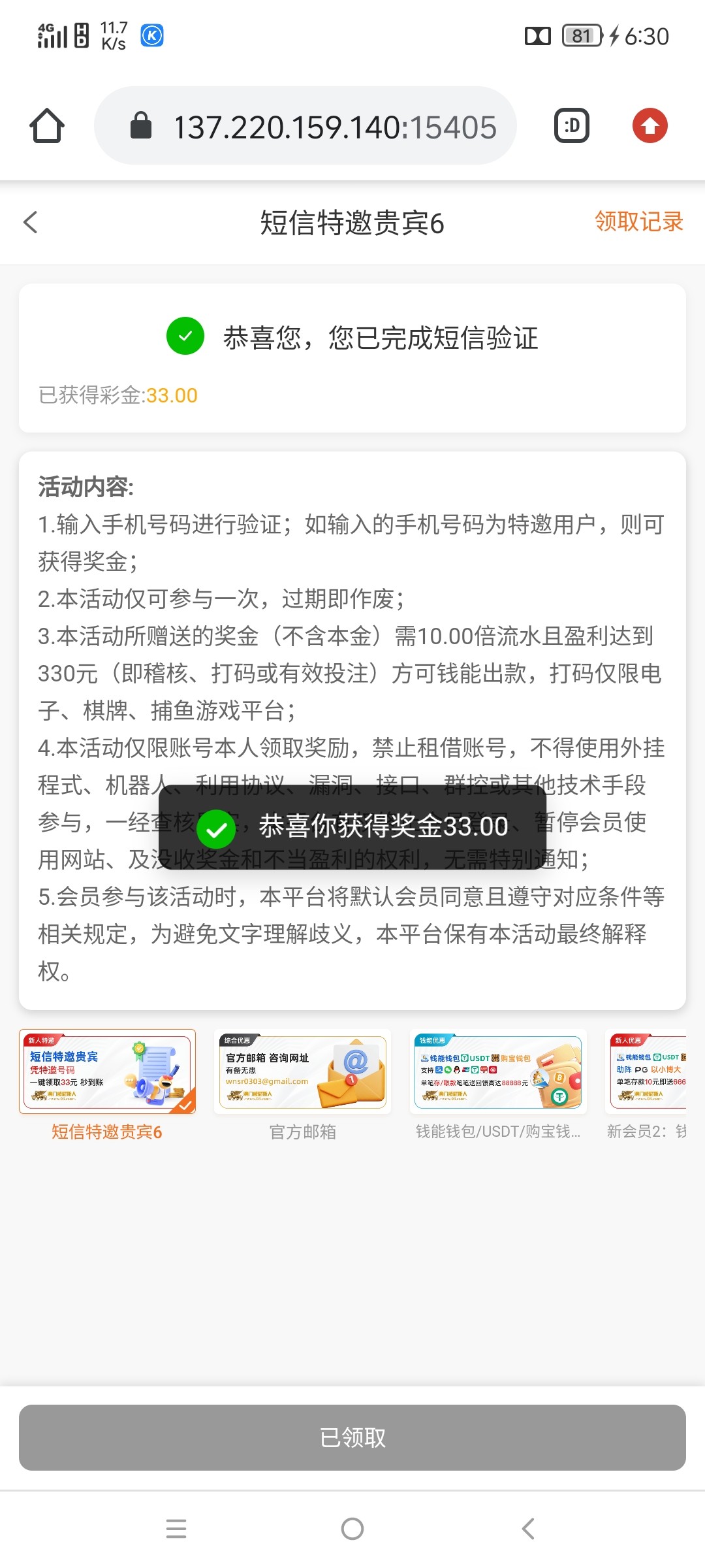 已经没有短信特邀33.现在是要充值100,送APP 23