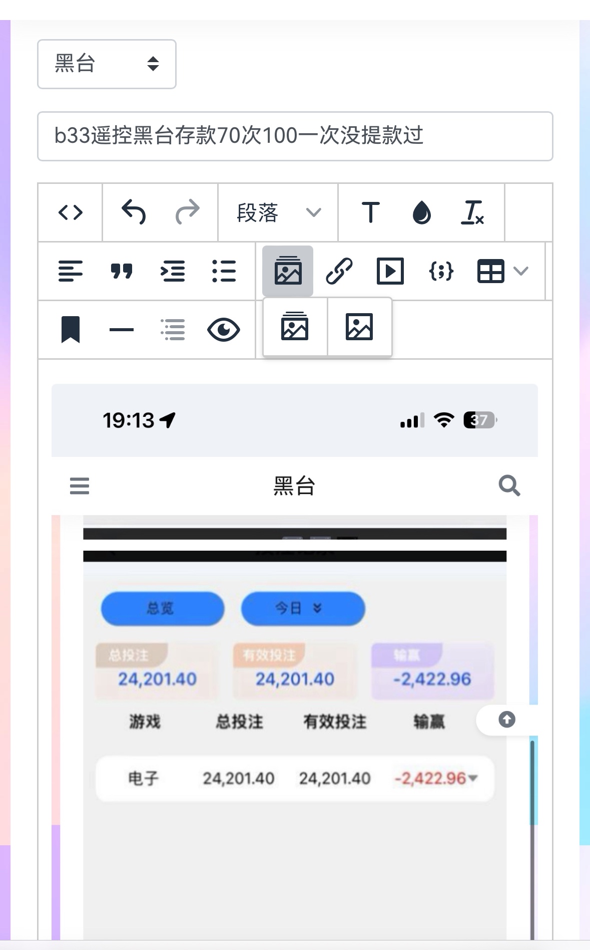 这个黑台电子游戏全部都是私人遥控台存款70次100一次没提款过 游戏都是按照一千设定杀100 200设定好了 你打多少流水输多少 8毛我输了7000