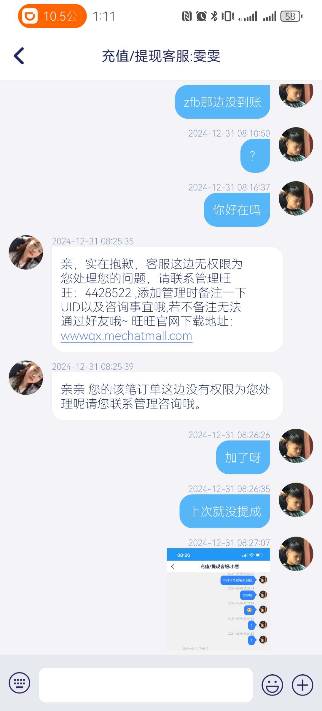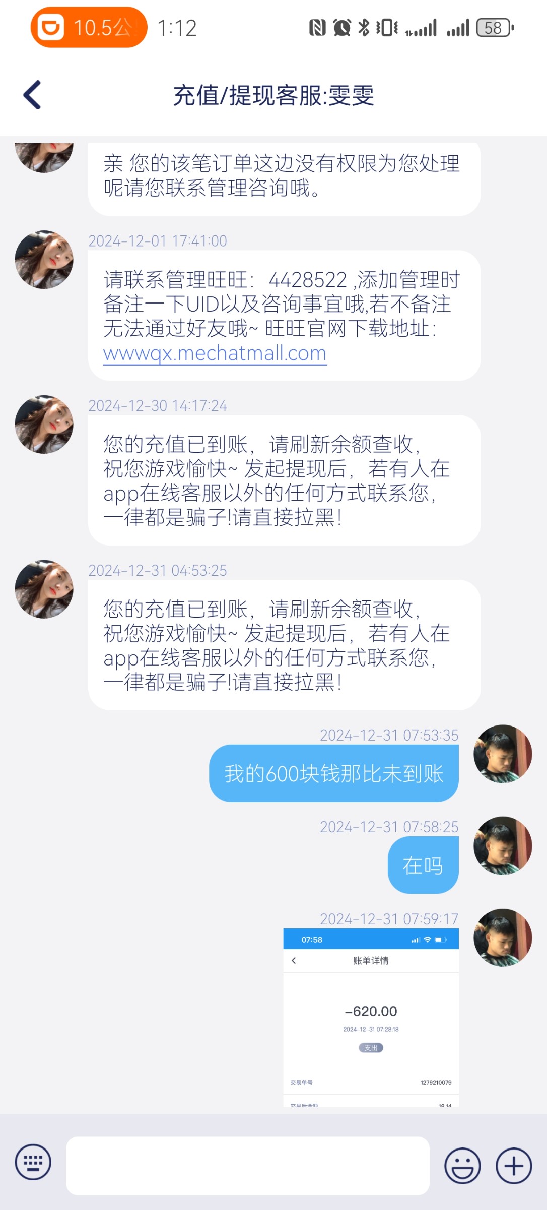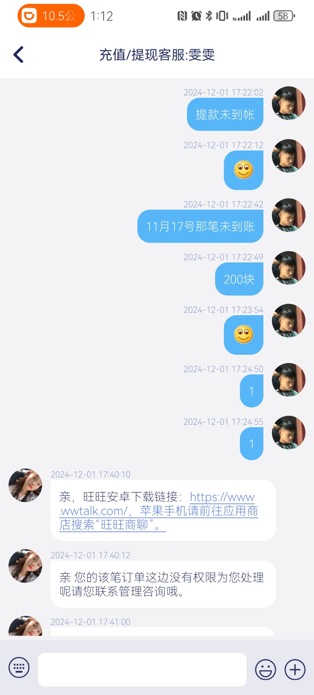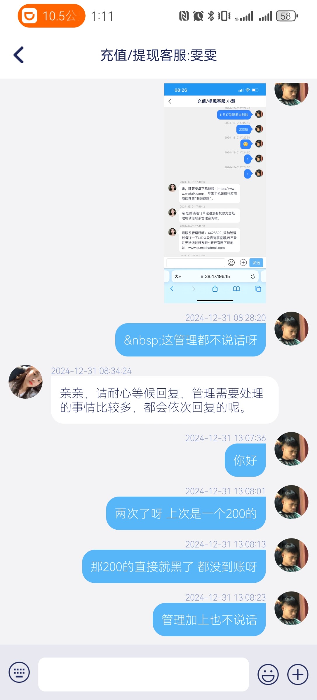 壹号娱乐 我是平台老用户了 近期黑了我两次款 第1次200不给到账 第2次600了 什么让我直接找管理 汪汪管理都不说话