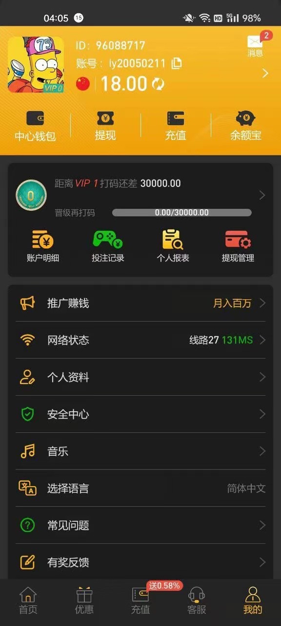 申请体验金18元需【完成短信验证】【绑定收款方式】正确输入已绑定手机号,获取短信验证码,验证成功,即可领取彩金;最低取款88元,最高盈利888元